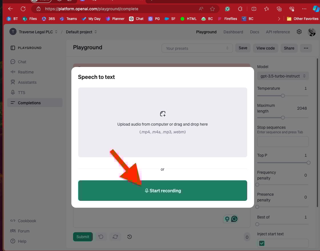 Those of you who have been part of the AI4the.WIN community for a long time know that I’m a big fan of AI-enabled speech-to-text, particularly OpenAI’s Whisper technology. When ChatGPT was first launched, the only way to access Whisper was through the OpenAI Playground’s Completions tool, where a microphone icon allowed users to dictate text effortlessly. Many of you will recognize this screen: